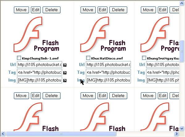 Code line[/FLASH'] (ko có dấu ' nghen) [FLASH]http://i105.photobucket.com/albums/m215/forgetmenot00/Flash/KiepChungTinh-1.swf